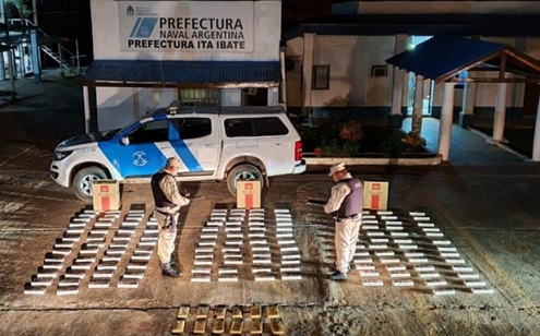 Policiales | El procedimiento se realizó entre los kilómetros 1.375 y 1.390 del río Paraná. Una embarcación proveniente de la orilla paraguaya arrojó los bultos a la costa de la isla Melilla y rápidamente regresó al país vecino. No hay detenidos.