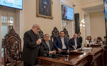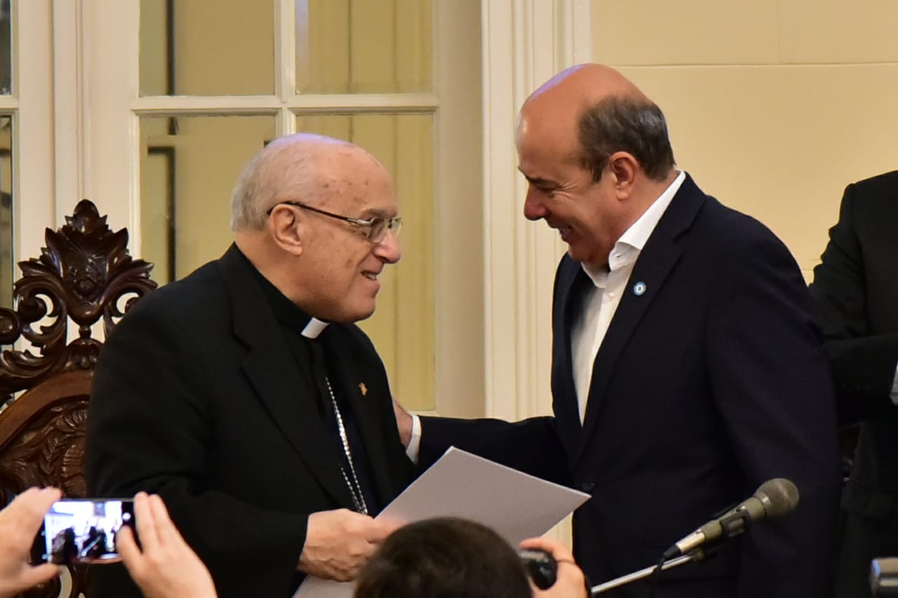 Política | El arzobispo emérito de Corrientes, Domingo Salvador Castagna, recibió este miércoles los honores que establece la Ley Provincial N°6.465, sancionada por el Legislativo y promulgada por el Ejecutivo, en base a su marcado aporte a la paz social. En este marco, el mandatario provincial, Gustavo Valdés, sostuvo en el recinto legislativo que el homenajeado “debería ser declarado ´Provinciano ilustre´, porque lo conocen en toda la provincia”, destacando la unanimidad lograda en ambas cámaras, tras sendas sesiones realizadas para la aprobación del Proyecto inicial.