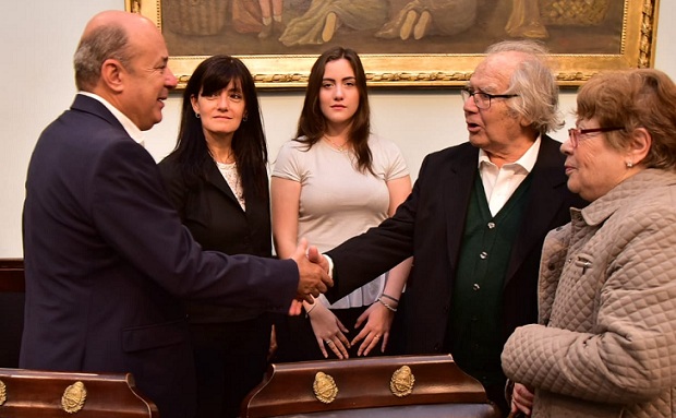 Política | El Premio Nobel de la Paz, Adolfo Pérez Esquivel se reunió con el vicegobernador Gustavo Canteros, las senadoras Nancy Sand, Carolina Martínez Llano, Alejandra Seward, y los senadores Noel Breard, Víctor Giraud y Daniel Alterats en el Salón de Acuerdos de la Legislatura provincial.