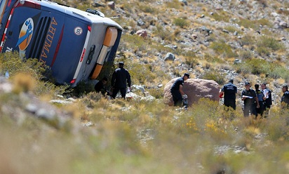 Nacionales | Se trata de una mujer peruana -que estaba embarazada-, su hija y el hijo de una pareja amiga. El chofer no podrá salir del país. “Perdón, me dormí flaco”. Cuatro palabras que resumen una nueva tragedia vial en la montaña mendocina. Esa fue la frase que eligió el chofer chileno Víctor Gómez para intentar explicarle a un pasajero en shock lo que acababa de ocurrir en el kilómetro 1.155 de la ruta nacional 7. Este domingo, minutos antes de las 6.30, en ese punto del corredor internacional que une a Mendoza con Chile, un colectivo de la empresa Buses Ahumada se desbarrancó unos 10 metros y volcó, dejando un saldo de tres personas muertas y 44 con heridas de diferente gravedad.