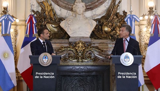 Nacionales | El presidente Mauricio Macri afirmó este jueves que el Mercosur y la Unión Europea están “muchísimo más cerca” de un acuerdo comercial, y se esperanzó en que “tanto el presidente [Emmanuel]) Macron como yo podamos dar un empuje final para que esto efectivamente se dé”, al hablar tras la reunión bilateral en la Casa Rosada, en la jornada previa a la Cumbre del G20, en la ciudad de Buenos Aires.