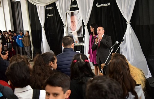 Política | El vicegobernador de la Provincia Gustavo Canteros participó en el acto por el 20 aniversario del Colegio Secundario Hipólito Yrigoyen, con la presencia de la comunidad educativa, integrada por 1400 alumnos, docentes, tutores y autoridades escolares.