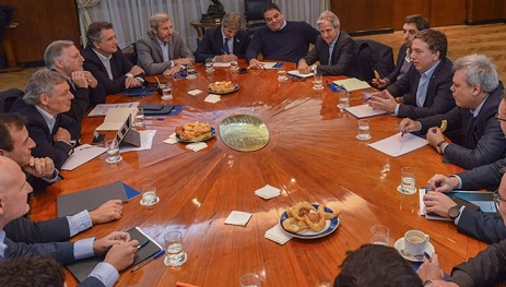 Nacionales | El jefe de Gabinete dijo que es necesario el "compromiso" de la dirigencia argentina para llegar al equilibrio fiscal. Y pidió "no pensar en fantasmas" por la negociación con el FMI. El Gobierno busca "un gran acuerdo nacional" con la oposición para acelerar la reducción del déficit fiscal. Así lo indicó el jefe de Gabinete, Marcos Peña, al término de una nueva reunión de ministros que encabezó el Presidente.