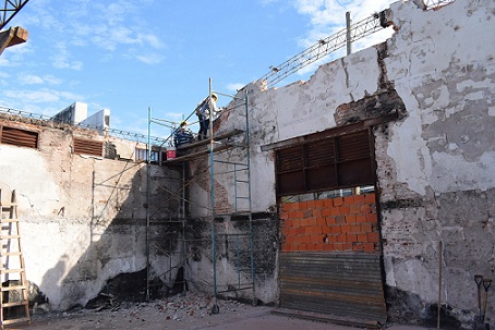 Información General | La Provincia encara la primera etapa de la construcción del “Mercado Ex Vía”, y arrancó con la limpieza y demolición del edificio destruido por un incendio a fines del 2018. Los trabajos, ante la intensa actividad vehicular y peatonal que rodea al lugar, son emprendidos de manera manual, casi artesanal, a efectos de reducir al mínimo el riesgo de derrumbes y afectación de la estructura edilicia contigua del mercado de productos frescos.