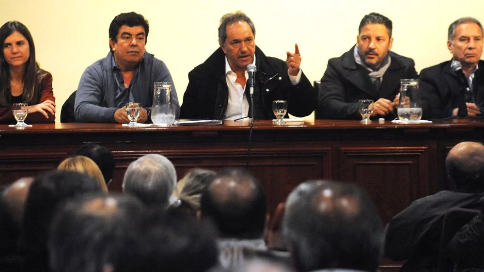 Nacionales | En un encuentro celebrado en la sede del PJ nacional, un grupo de intendentes y dirigentes distritales peronistas confirmaron su apoyo al frente K que irá por fuera del partido que representan. Scioli destacó que el espacio de CFK "es un paso superador del Frente Para la Victoria". Pasaron del dicho al hecho. Ya no es un apoyo virtual o extraoficial que juega al borde de la legalidad: en la histórica sede partidaria de la calle Matheu, buena parte del PJ bonaerense (el espacio que formalmente tendrá como candidato a Florencio Randazzo) formalizó anoche su adhesión al frente Unidad Ciudadana que lidera Cristina Kirchner.