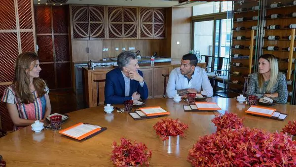 Nacionales | En el cierre de su visita al país asiático, el Presidente se encontró con el futbolista en un hotel. Tal como se había especulado durante los últimos días, el presidente Mauricio Macri saludó este jueves al futbolista Carlos Tevez en el cierre de su visita oficial a China. El encuentro entre el jefe de Estado y el jugador de Shanghái Shenhua se dio en el Hotel Hyatt on The Bund. También estuvieron allí su esposa, la primera dama Juliana Awada, su hija Antonia, y Vanesa Mansilla, esposa de Tevez.
