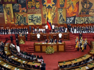 Internacionales | Los legisladores de su partido no se presentaron al debate. La oposición asegura que no le alcanzan los votos. La norma reduce medios privados y sanciona a quienes se nieguen a rectificar informaciones. El presidente del unicameral Parlamento, Fernando Cordero, del movimiento Alianza País (AP) del mandatario socialista Rafael Correa, suspendió la sesión.AP, el principal bloque parlamentario con 53 escaños, necesitaba 63 votos para que se apruebe el texto de 128 artículos que impulsa desde hace cuatro años. Sin embargo, algunos oficialistas no se presentaron.La iniciativa establece que 34% de las frecuencias sean concedidas a medios comunitarios, 33% a públicos y 33% a privados con fines de lucro. El sector privado controla actualmente el 85,5% de las frecuencias radiales y 71% de las televisivas, según la estatal Superintendencia de Telecomunicaciones.