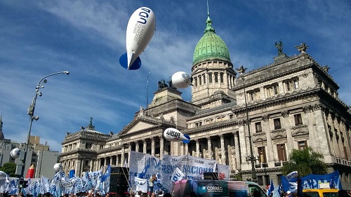 Nacionales | Numerosos gremios de maestros se congregaron en la Plaza de los dos Congresos en el inicio del paro nacional de 48 horas. En las próximas horas marcharán al Ministerio de Educación para continuar con el reclamo por las paritarias. Diversas agrupaciones de gremios docentes y otros tantos maestros particulares llegaron al Congreso para realizar una manifestación en defensa del paro de 48 horas a raíz del conflicto por las paritarias con el Gobierno nacional. La Plaza de los dos Congresos será el escenario donde se congregarán la mayoría de los gremios para iniciar dentro de unos minutos la movilización hacia el Palacio Pizzurno, donde se ubica el Ministerio de Educación.