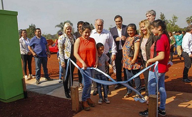 Política | El gobernador de la Provincia, Ricardo Colombi encabezó la entrega de viviendas construidas por el INVICO, y de dos motocicletas para la Comisaría local, oportunidad en la que anunció que se empiezan a construir 30 nuevas unidades habitacionales para la localidad, el acto se desarrolló en el Polideportivo Municipal.