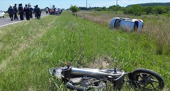 Policiales | El accidente se produjo sobre Ruta Nacional N°12. Un automóvil impactó contra una motocicleta que circulaba en la misma dirección. Luego del choque, el automovilista no pudo controlar el vehículo y volcó metros más adelante. El conductor de la moto debió ser hospitalizado.