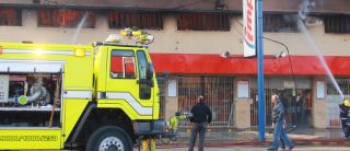 Policiales | Cuatro dotaciones de bomberos continúan trabajando en la zona del local de Supermercados Impulso, que se prendió fuego ayer por la tarde.