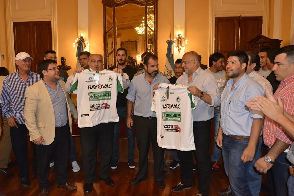 Política | Al promediar esta mañana, el gobernador Ricardo Colombi recibió en el Salón Amarillo de la Casa de Gobierno a una delegación del Club Mandiyú, que recientemente logró el Ascenso para participar en el Torneo Federal A – 2017.