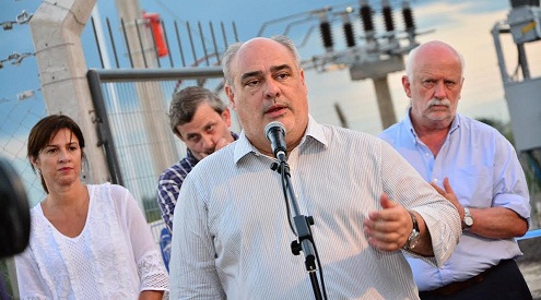 Política | En un acto realizado en las mismas instalaciones del Parque Industrial de la ciudad de Goya, el Mandatario Provincial acompañado por los ministros de Coordinación y Planificación Eduardo Vischi, de Industria Comercio y Trabajo Ignacio Osella, la ministra de Turismo Inés Pressman, y el de Desarrollo Social Federico Moulía, el diputado nacional Gustavo Valdés, legisladores provinciales, funcionarios de la Dirección Provincial de Energía encabezados por el sub-interventor Alfredo Aún, y demás funcionarios del ámbito provincial, empresarios y vecinos del lugar, procedió a inaugurar la infraestructura eléctrica que abastecerá en exclusiva a las empresas radicadas en el predio, a la vez que se anunció que ya está presupuestado para ejecutar el año venidero el enripiado y la instalación de los desagües pluviales.