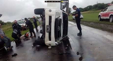 Policiales | El hecho se registró pasadas las 13 en el kilómetro 964 de la Ruta Nacional 12. La lluvia habría sido un de los factores que provocaron el choque entre un Toyota Hilux y un Volkswagen Suran. Personal de Bomberos y efectivos de la Policía realizaron intenso trabajo de rescate.