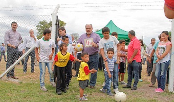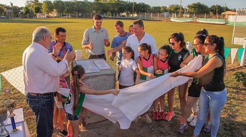 Política | Luego del acto central en la Sociedad Rural local, Ricardo Colombi, su comitiva presente y el intendente Ernesto Domínguez se trasladaron hasta las remozadas instalaciones del Club Sportivo San Lorenzo de la localidad, ubicado en el Barrio Sarmiento. Allí, se realizó un sencillo acto de apertura de las obras realizadas por el Instituto de Viviendas de Corrientes, representado por su titular, Bernardo Rodríguez, presente en el lugar