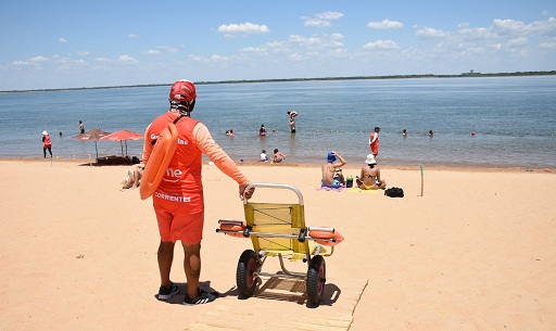 Información General | Los vecinos y turistas pueden acercarse a disfrutar de los diversos servicios que la Municipalidad de Corrientes brinda en las cinco playas públicas, con todos los cuidados preventivos por la pandemia de la covid-19. En los balnearios de la Arazaty, además, se cuenta con sillas anfibias, caminos con rampas y baños adaptados, para que todos puedan aprovecharlos.