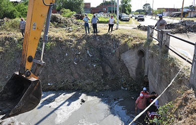 Información General | Se trata de la reparación de la zona donde socavó el pavimento, debido a las filtraciones de agua generadas por la avería en uno de los tubos de la estructura del Canal 4. En paralelo, continúan las múltiples labores preventivas en el sistema de desagües de la ciudad.