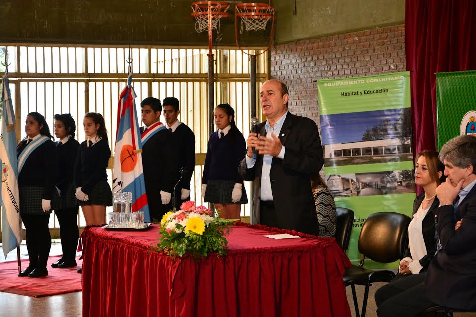 Política | Con la participación de la comunidad escolar, encabezada por la directora Patricia Chesenelli, el vicegobernador Gustavo Canteros y la Ministra de Educación Susana Benítez, inauguraron el gimnasio de la Escuela Manso, con el objetivo de reforzar la educación integral de los alumnos.