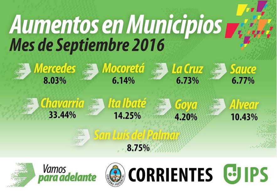 Política | La Interventora del IPS, Lorena Lazaroff, confirmó aumentos para los jubilados que prestaron servicios en los municipios de Mercedes (8,13%), Mocoretá (6,14%), La Cruz (6,73%), Sauce (6,77%), Chavarría (3,44%), Itá Ibate (14,25%), Goya (4,20%), Alvear (10,43%) y San Luis del Palmar (8,75%). La funcionaria además denunció que la Caja Municipal de Capital no realiza aportes al IPS desde 2013.