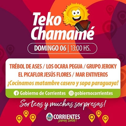 Información General | Continuando con los espacios culturales de cada fin de semana a través de los programas Corrientes Cumbia Virtual y Teko Chamamé, llevarán nuevamente la mejor animación a la casa de los correntinos, interactuando con los televidentes por medio de sorteos.