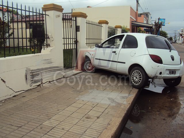 Policiales | Como siempre el fin de semana es habitué los accidentes viales en Goya, y más aun en la madrugada de los días domingos, en este caso un automóvil Ford Ka que era conducido por un joven de apellido Vicentin quien transitaba por calle Colon y a la altura de 1763 impacto de lleno el muro de una vivienda de la familia Galarza, el joven al ver lo sucedido huyo del lugar hacia su casa, según comentaron testigos a TNGOYA, al parecer recibió heridas ya que había resto de sangre dentro del vehículo.