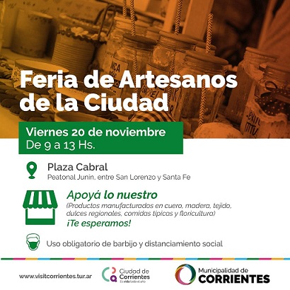 Información General | Con todas las medidas sanitarias, los feriantes estarán en el paseo público en esta oportunidad con horario reducido de 9 a 13, donde comercializarán sus productos manufacturados en cuero, madera, tejido, entre otros, además de dulces regionales, comidas típicas y floricultura.