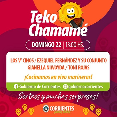 Información General | Continuando con los espacios culturales de cada fin de semana a través de los programas Corrientes Cumbia Virtual y Teko Chamamé, llevarán nuevamente la mejor animación a la casa de los correntinos, interactuando con los televidentes por medio de sorteos.