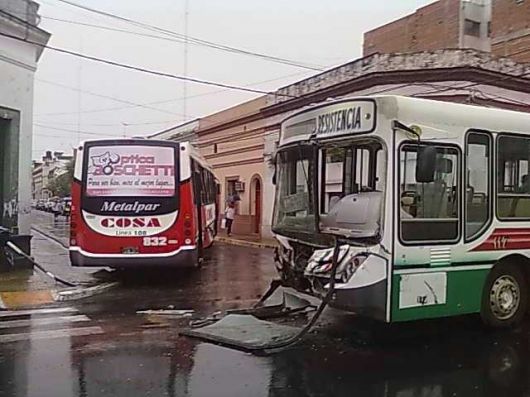 Policiales | En la mañana de hoy lunes se produjo una fuerte colisión entre dos colectivos en la esquina de calles Buenos Aires y 9 de julio. A raíz de este accidente seis personas sufrieron golpes y heridas por lo cual tuvieron que ser derivadas al Hospital Escuela.