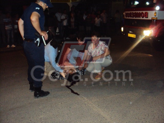 Policiales | Una anciana de unos 65 años de edad resulto muy herida al ser embestida por un motociclista en la noche del día sábado por la Avenida José J. Rolon casi Entre Ríos, quien se prestaba a cruzar de carril y el joven que se dirigía a bordo de una moto 110 c.c embistió de lleno cayendo la mujer a la cita asfáltica quien recibió un fuerte golpe en la cabeza pudo comprobar el cronista de TNGOYA.