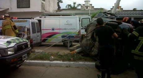 Policiales | Ocurrió pasadas las 6.30, por Laprida al 1.200 en el barrio San Gerónimo. Se trata de un Renault Clío azul patente COW 669. Tres ocupantes jóvenes iban en el mismo. Los heridos fueron identificados como Darío Montero de 21 años, Matías Maidana y Leandro Lencinas, quienes ya fueron trasladados al Hospital Escuela, tras estar varios minutos atrapados entre los hierros retorcidos.