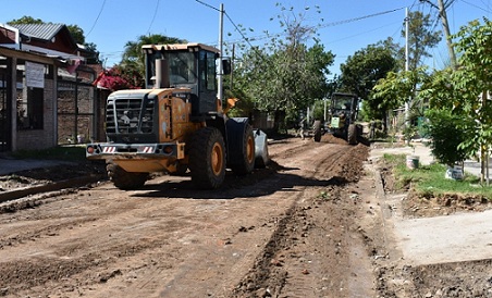 Información General | El Gobierno Provincial está pavimentando calles del barrio Progreso de la ciudad Capital, teniendo previsto proveer de concreto asfáltico a 14 cuadras más de la zona que irán a sumarse a los casi mil metros de pavimento caliente que ejecutó recientemente. Actualmente personal y máquinas del ministerio de Obras y Servicios Públicos trabajan en el preparado de la sub base estructural de la calle José Hernández, entre Fitz Simon y Cafayate.