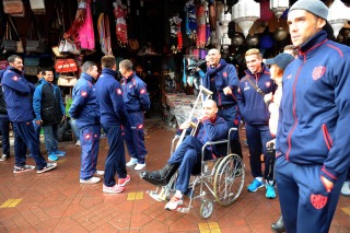 Deportes | El plantel hizo un alto en su preparación para el Mundial de Clubes FIFA 2014 y realizó esta tarde, en la fría y lluviosa Marrakech, un paseo "evangelizador" por la tradicional plaza Jamaa El-Fna, situada en el barrio de la Medina, dentro de la Ciudad Vieja.