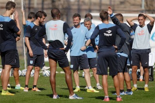 Deportes | El Vasco dispuso una alineación con Daniel Díaz y Juan Forlín como dupla de zagueros y a Juan Manuel Martínez en el ataque, en la primera práctica realizada de cara al superclásico del jueves próximo.