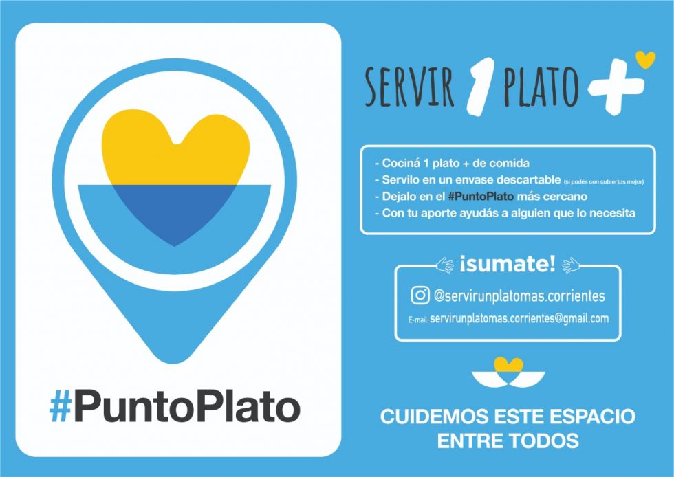 Información General | La iniciativa solidaria “servir un plato más” propone cocinar para personas en situación de calle, o qu eno tienen para comer y dejar la comida en puntos específicos de la ciudad, denimonados "puntos plato" que son cajones blancos, para que ellas puedan pasar a buscar. Quienes quieran sumarse a la propuesta cocinando o sumando un punto más, pueden comunicarse al Instagram servirunplatomas.corrientes, al celular 3794- 015152, o al correo servirunplatomas.corrientes@gmail.com