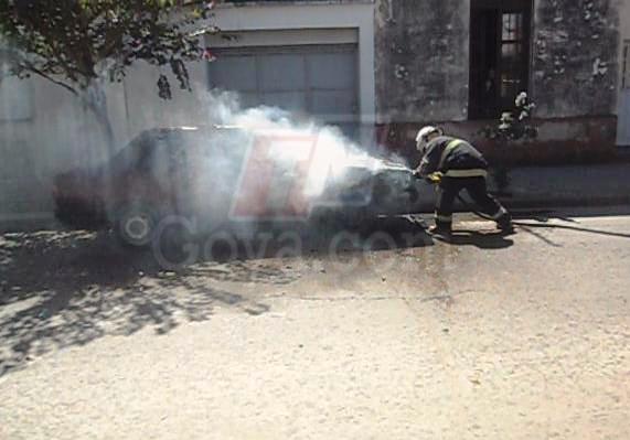 Policiales | Pasado el medio día del miércoles se prendió fuego un automóvil que transitaba por pleno centro de nuestra ciudad, según datos recabados en el lugar seria una falla eléctrica el producto del foco ígneo, una dotación de bomberos acudió al lugar para sofocar las llamas del vehículo.