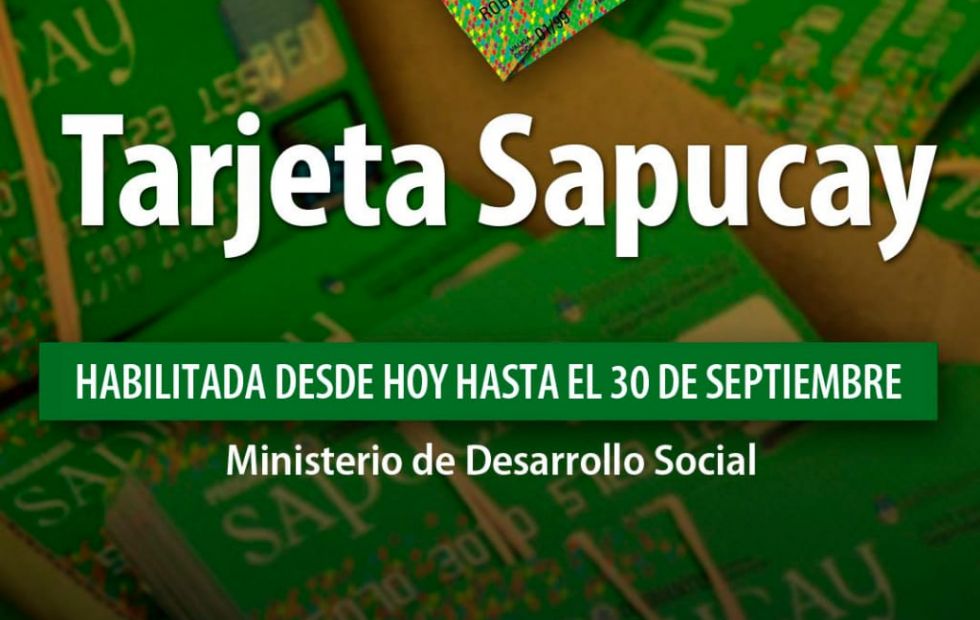 Información General | Las Tarjetas Sapucay están habilitadas desde este sábado y hasta el 30 de septiembre inclusive, informó el Ministerio de Desarrollo Social de la Provincia.