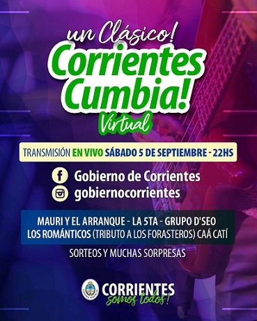 Información General | Mañana se llevará adelante una nueva jornada a través del programa oficial que ofrece el Gobierno de manera virtual, el cual ya se ha convertido en un encuentro habitual de los fines de semana para todos los correntinos, como es el “Corrientes Cumbia”.