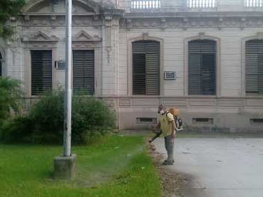 Política | A pocos días del inicio del ciclo lectivo 2016, el Ministerio de Educación de la Provincia continúa con las atareas de fumigación, corte de pasto y limpieza de tanques en los establecimientos educativos.