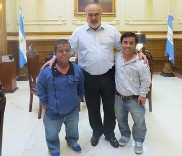 Política | El gobernador Ricardo Colombi, recibió hoy en su despacho a Facundo Rojas (24 años de edad), presidente de la Fundación Nendive, creador de la selección nacional de fútbol de personas de baja talla “Pulga y Pelusa”, a Juan Ramón Maciel (27), delantero del equipo y a la señorita Virginia Rojas, coordinadora de actividades y asesora de la mencionada Fundación.