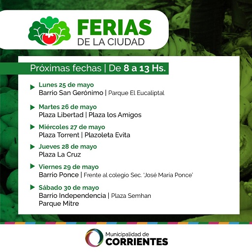Información General | Durante esta semana, las ferias de la ciudad recorrerán nuevamente distintos barrios de la capital correntina. Sin dejar de lado nuestras tradiciones patrióticas, este lunes, los vecinos del barrio San Gerónimo; además de los productos que se comercializan en estos espacios, bajo estrictas medidas de higiene también podrán adquirir el tradicional alimento.