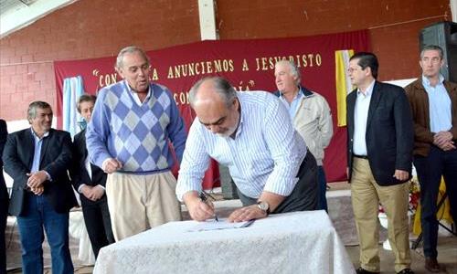 Política | El Gobernador encabezó también la entrega de un colectivo destinado a los alumnos de la zona rural. Con el Intendente se firmó un convenio para construir 15 viviendas de emergencia y refaccionar el polideportivo local.