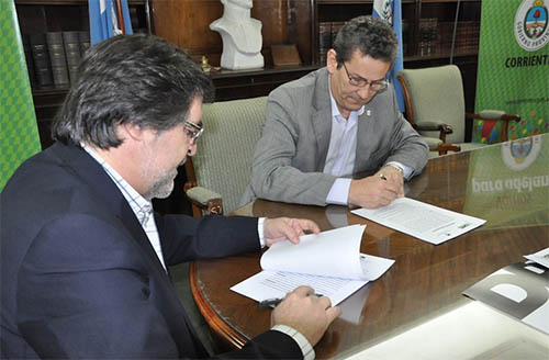 Política | En la mañana de este jueves el titular de la distribuidora local y ministro de Hacienda y Finanzas, Enrique Vaz Torres, firmó un convenio con el decano de la Facultad de Humanidades para implementar un sistema de pasantías a través del cual estudiantes universitarios se sumen al área de comunicación de la empresa provincial con sus clientes.