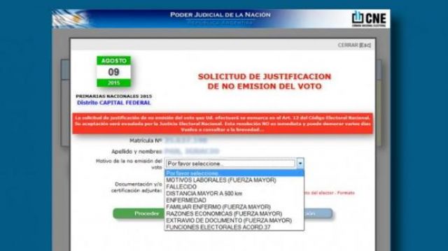 Política | La Cámara Nacional Electoral habilitó el envío vía web de un archivo que permita acreditar una razón válida para no haberse acercado a las urnas.