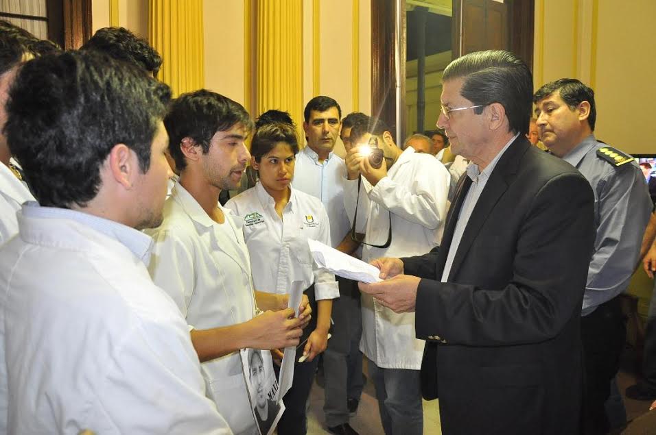 Política | El ministro de Seguridad, Pedro Braillard Poccard recibió este lunes un petitorio por mayor seguridad presentado por los Centros de Estudiantes de Agronomía y Veterinaria, motivado por el asesinato del joven Maximiliano Aquino, sucedido el fin de semana en el barrio Aldana.