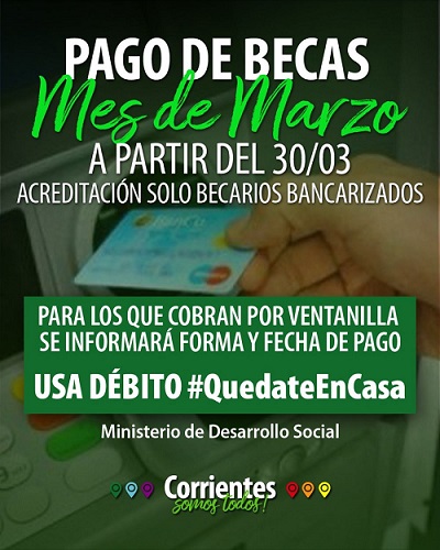 Información General | El Ministerio de Desarrollo Social de la provincia, a cargo del ministro Adán Gaya, informa que las liquidaciones a beneficiarios de becas, correspondiente al mes de marzo de 2020, estarán acreditadas y disponibles a través de cajeros de automáticos a partir del día lunes 30 de marzo de 2020.