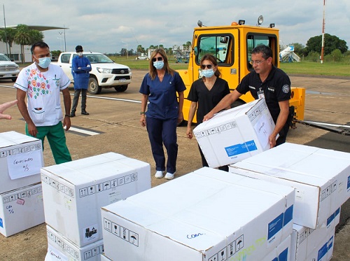 Información General | El Gobierno provincial recibió este sábado en el aeropuerto Piragine Niveyro cinco respiradores, además de alcohol en gel y pulverizadores, entre otros materiales básicos, por parte del Ministerio de Salud de la Nación.