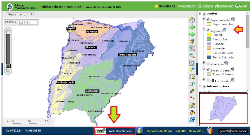 Política | Continuando el desarrollo continuo y la implementación de mejoras en el Servidor de Mapas del Ministerio de Producción de la Provincia, se implementó el Servicio Web Map Service (WMS) o Servicio de Publicación de Información espacial.