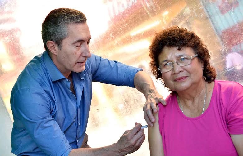 Política | El ministro de Salud Pública de la provincia, Julián Dindart, estuvo hoy en la apertura del Calendario Regular de Vacunación gratuita y la antigripal para las personas comprendidas en los grupos de riesgos. Al promediar la mañana profesionales del área vacunaron a cientos de personas en la carpa verde instalada en la Plaza Juan de Vera en el horario de 9 a 12 y de 17 a 20 y la misma actividad se cumplirá en el lugar mañana, sábado 25 a la misma hora. El organismo provincial hizo saber, asimismo, que también están disponibles las vacunas antigripales pediátricas.