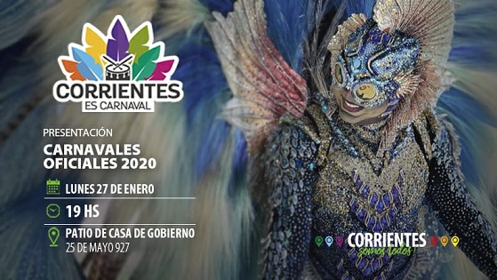 Información General | Este lunes a las 19:30 en el patio de Casa de Gobierno se realizará un acto en el que el gobernador Gustavo Valdés anunciará las actividades del Carnaval de Corrientes 2020, que inicia el próximo fin de semana.