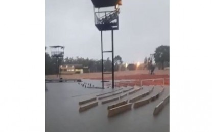 Información General | La intensa lluvia que azota a la ciudad en esta mañana, complicó gravemente el escenario donde se llevará a cabo la Fiesta Nacional del Chamamé este viernes.